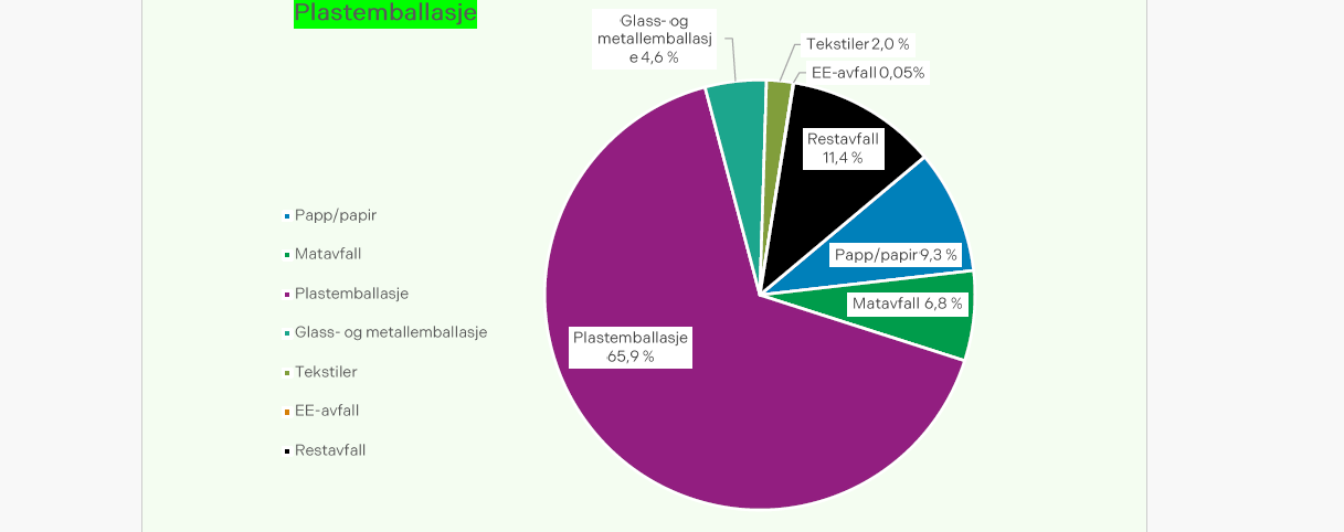 Bildet viser hva som ble funnet i posene med lilla prikker, altså de til plast emballasje. Dårlig resultat her vil påføre våre abonnenter ekstra kostnader da det som skulle bidra til en positiv verdi ikke blir det i praksis.