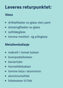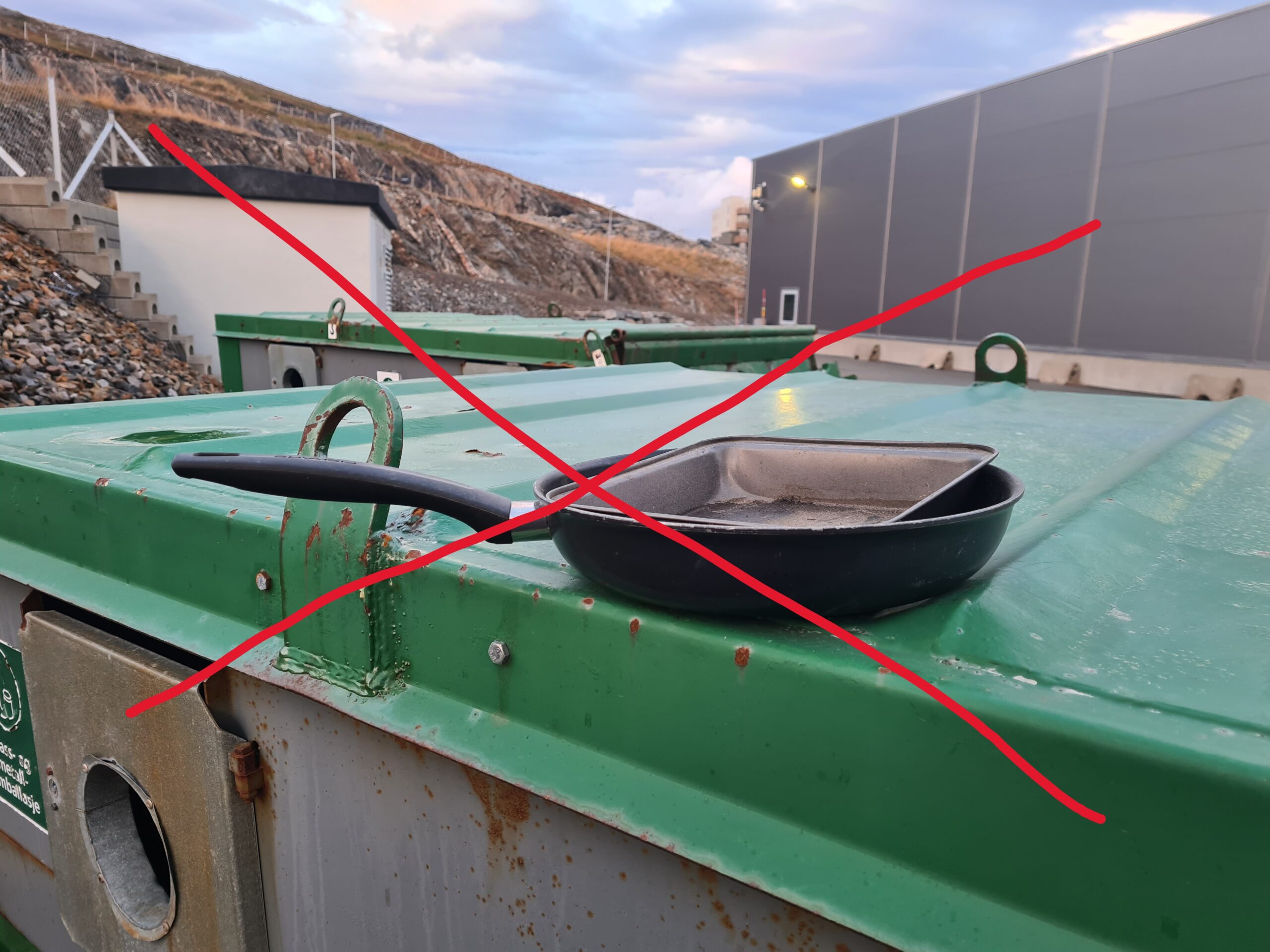 Stekepanner, bildeler, metallbeslag og liknende er IKKE glass og hermetikk og skal ikke legges på byens returpunkter.