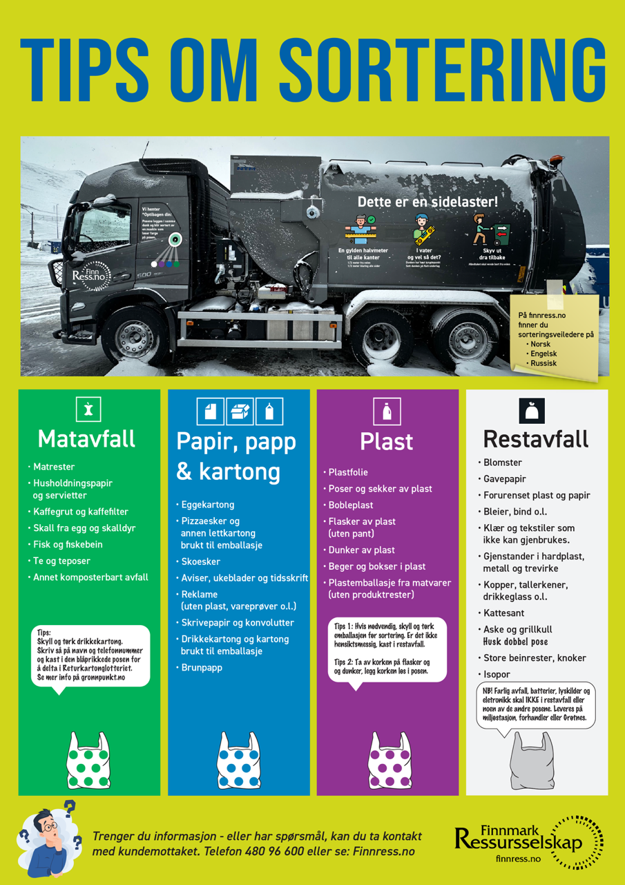Husk at mat, drikkekartong , plast og brennbart restavfall ikke skal til returpunkt, men i den ordinære kommunale henteordningen. (Optibag)